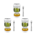 Materiale: ABS senza BPA, silicone alimentare - Dimensioni barattolo: 18x9 cm - Dimensioni forchetta: 16 cm - Capacità: adatta a vari sottaceti e alimenti - Funzione speciale: filtro e separazione liquido/solido - Quantità: 3 barattoli inclusi