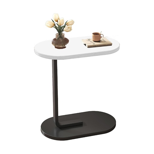 Tavolino Laterale a Forma di C in Legno per Divano e Letto