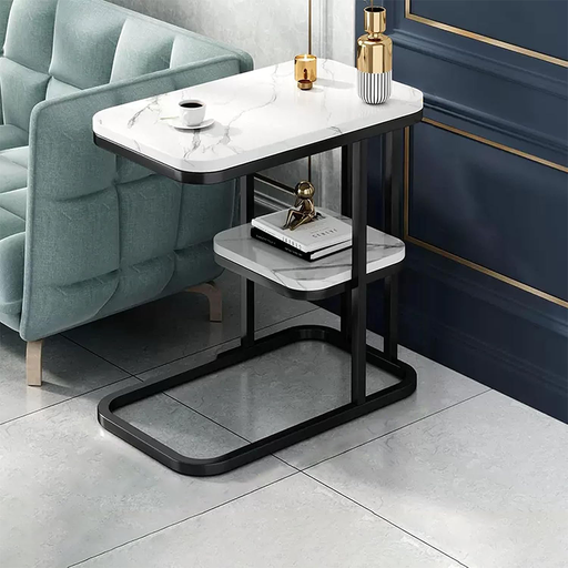 Tavolino laterale a forma di C: praticità e stile sempre a portata di mano Questo tavolino a forma di C, con piani in legno e struttura in metallo ...