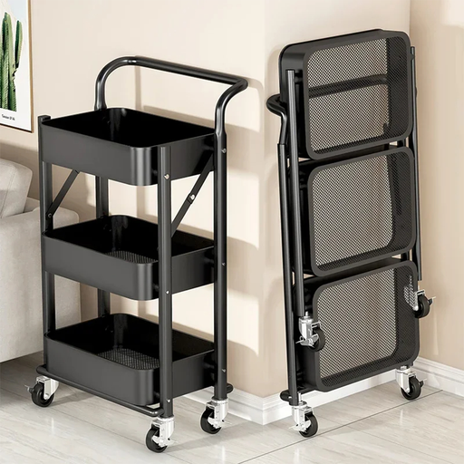 Carrello Pieghevole a 3 Ripiani: Organizzazione Intelligente e Versatile Massimizza lo spazio e mantieni tutto in ordine con questo carrello portao...