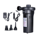 Questa pompa d'aria elettrica ricaricabile da 4500mAh è il compagno ideale per chi cerca efficienza e praticità ovunque si trovi. Perfetta per materassini, piscine gonfiabili, campeggio e molto altro, funziona sia con alimentazione da auto che da casa e include 3 adattatori per la massima versatilità.