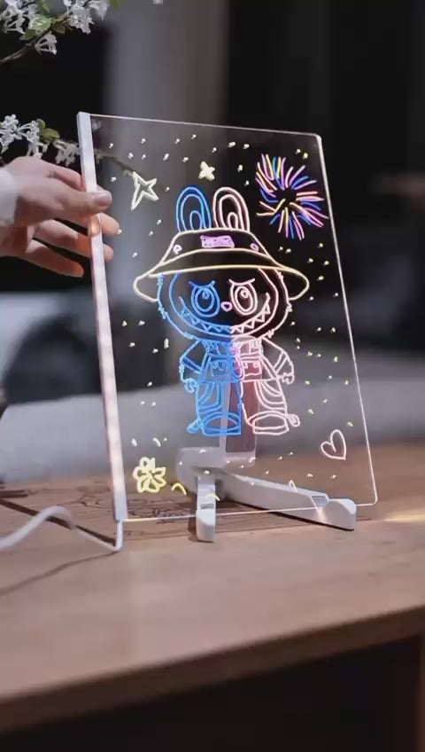 Lavagna Luminosa a LED Cancellabile con Penne Colorate e Supporto