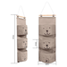 Materiale: cotone e lino | Dimensioni: 55x20 cm | Numero scomparti: 3 | Caratteristiche: pieghevole, impermeabile, lavabile, traspirante | Colore: beige con bordo in legno | Peso: 300g | Uso: interno casa, viaggi, ufficio, cameretta
