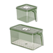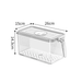 Materiale: plastica trasparente per alimenti (senza BPA) - Colore: trasparente con coperchio opaco - Dimensioni: 28 cm x 18 cm x 10 cm (variabili a seconda del modello) - Caratteristiche: impilabile, con manico integrato e coperchio con quadrante per data - Funzione extra: quadrante rotante per monitoraggio della freschezza (mese/giorno) - Uso: frigorifero, congelatore, armadietto cucina, dispensa - Pulizia: lavaggio a mano consigliato