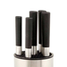 Materiale coltelli: Acciaio cromato nero SS 2CR14 – Dettagli: plastica PP, ABS, PE – Ceppo: 35 x 11 cm – Caratteristiche: resistente alla corrosione, durevole, design elegante, sicuro e funzionale – Uso: cucina domestica, taglio carne, verdure, frutta e pane – Set: 5 coltelli + ceppo porta coltelli