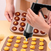 Materiale: Acciaio Inox + Lega di Alluminio – Numero stampi: 13 – Numero ugelli: 8 – Meccanismo: Manuale con grilletto – Uso: Preparazione biscotti, decorazione torte e dolci – Certificato per uso alimentare – Lavabile a mano – Colore: Argento