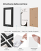- Overall dimensions: 61.5 x 61.5 x 2 cm - Stable structure with integrated 3D effect - Material: durable plastic with matte black finish - Capacity: 9 photos (2 vertical + 7 horizontal) - Supported formats: 10x15 cm, 13x18 cm, 20x25 cm - Rear clip opening system for easy photo insertion - Installation: to be hung vertically on the wall
