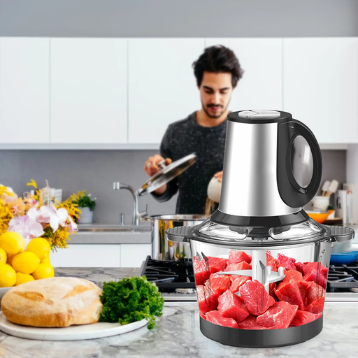 2L Stainless Steel Food Processor with 4 Blades and 2 Speeds Compact, powerful, and safe: your new kitchen ally for quick and precise preparations...