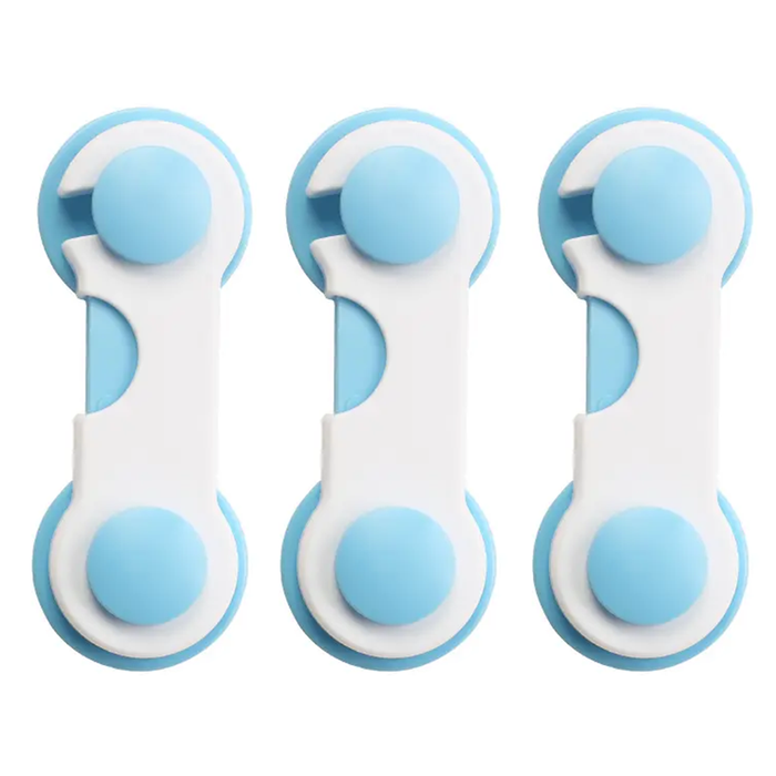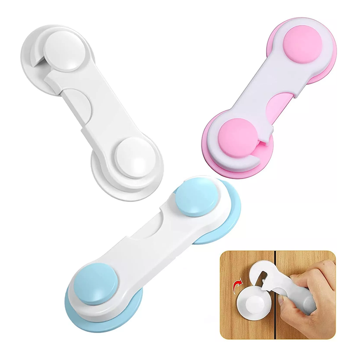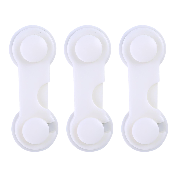 Material: High-strength plastic – Closure type: Rotating buckle + pressure – Installation: Strong adhesive included – Removal: By heat – Color: Neutral white – Use: Doors, drawers, toilet, oven, fridge, cabinets – Available packages: 1 single piece or set of 3
