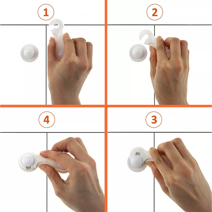 Avoid household accidents and protect your belongings with this simple, effective, and minimalist door lock. Ideal for preventing small children and pets from accessing drawers, doors, refrigerators, ovens, and more. It fits any flat surface and installs in seconds, with no tools required.