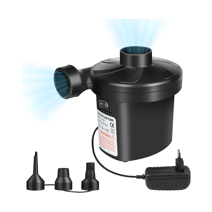 The 2-in-1 Portable Electric Inflator is the perfect solution for easily inflating and deflating air mattresses, inflatable pools, and other camping items. Thanks to its 3 nozzles, it offers wide compatibility with a variety of inflatable items, both indoors and outdoors. Power, convenience, and versatility in a single device!