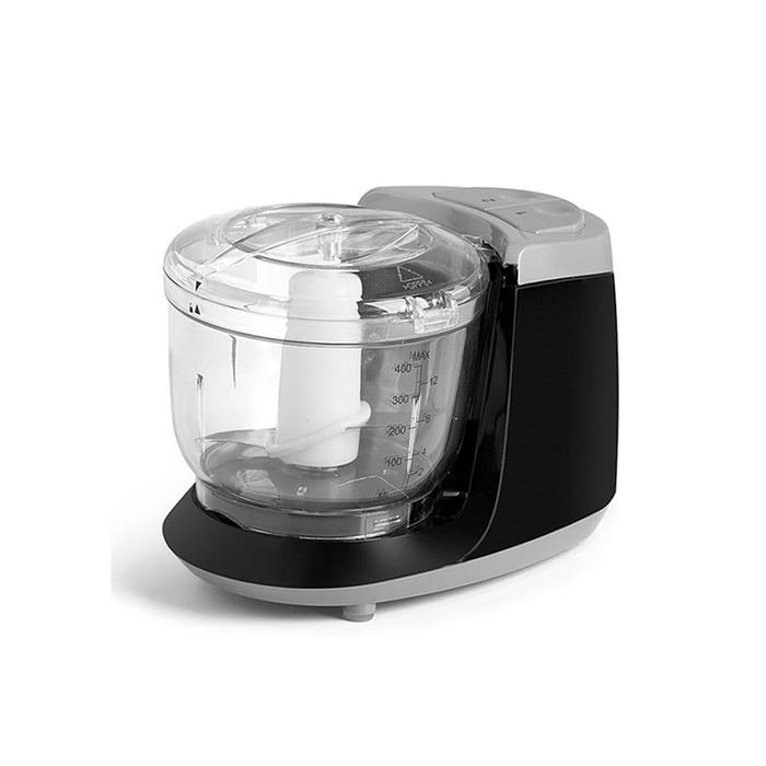 Power: 350W – Container capacity: 400 ml – Speed: 2 settings – Materials: Stainless steel (blades), resistant plastic (body) – Dimensions: 13 x 20 x 14.5 cm – Washing: not dishwasher safe – Cleaning: manual – Functions: Chopping, mincing, quick preparations – Base: Non-slip – Design: Compact and ergonomic