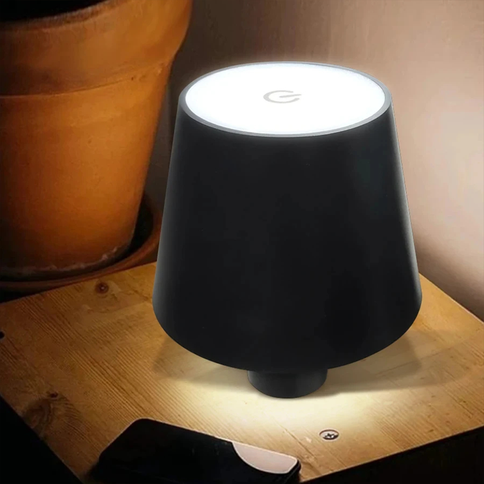Peso: 300 g - Colori disponibili: Nero, bianco - Materiale: Metallo e plastica - Modalità cambio luce: Touch - Potenza: 0,1-3,5 W - Sorgente luminosa: Bianca, calda, bianco caldo - Voltaggio: 5 V/1 A - Indicatore di carica: Luce rossa - Batteria: 2000 mAh - Tempo di ricarica: 4 ore - Dimensioni: 12x14 cm