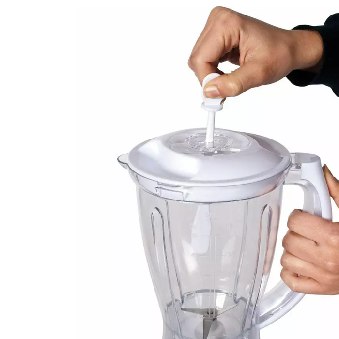 Potenza: 300W - Capacità contenitore: 1,5 litri - Velocità: 4 livelli + funzione Pulse - Lame: Acciaio inox ultra resistenti - Base: Piedini a ventosa antiscivolo - Tappo estraibile con foro per inserire la spatola - Lunghezza cavo: 120 cm (con vano avvolgicavo) - Colore: Bianco - Alimentazione: 220-240 V~ 50/60 Hz