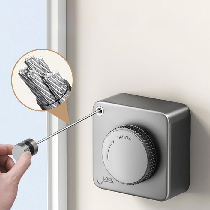 Il Filo Stendibiancheria Retrattile è la soluzione ideale per chi ha poco spazio ma non vuole rinunciare alla comodità di uno stendibiancheria resistente e pratico. Elegante, discreto e funzionale.