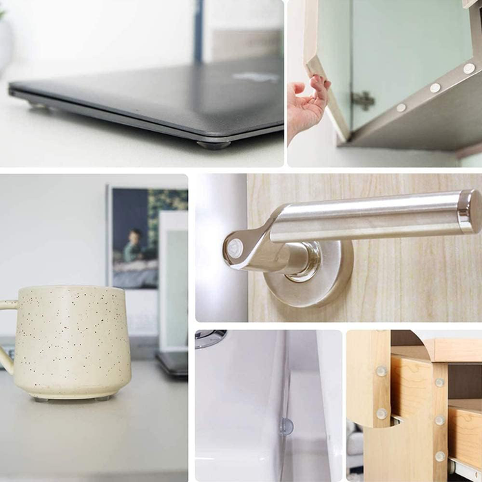 Materiale: Silicone trasparente - Quantità: 50 - Adesivo: Adesivo resistente per applicazione rapida - Utilizzo: Protezione di porte, finestre, mobili, cassetti, armadi e altre superfici - Adatto per: Superfici lisce e pulite