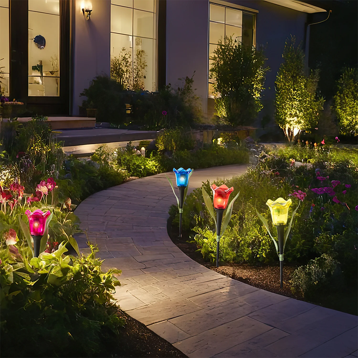 Illumina il tuo giardino con stile! Lampada Solare LED a forma di Tulipano: ecologica, resistente e decorativa.