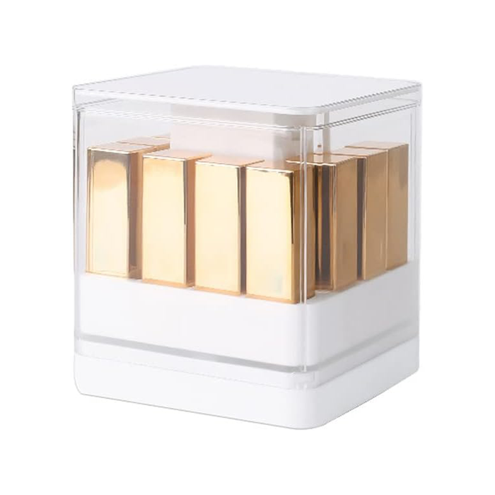 - Protezione dalla polvere – Il coperchio trasparente mantiene i rossetti sempre puliti e visibili.