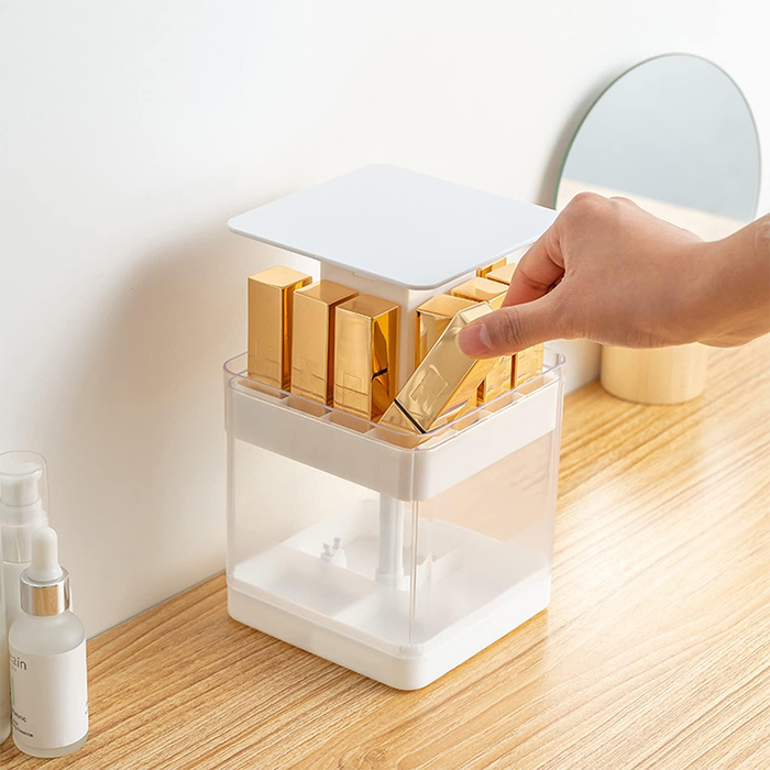 Scopri un modo innovativo e raffinato per conservare i tuoi rossetti preferiti! Questo elegante organizer con apertura automatica mantiene tutto in ordine e al riparo dalla polvere, aggiungendo un tocco di classe alla tua postazione beauty.