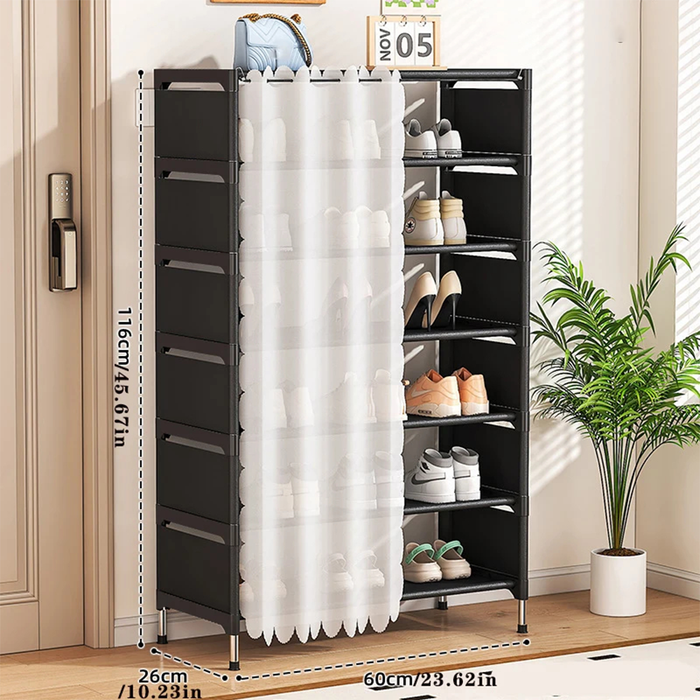 Scarpiera 7 Ripiani con Tenda: Ordine Perfetto, Spazio Protetto