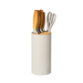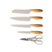 Materiale lame: Acciaio inossidabile - Materiale manico: Polipropilene effetto legno -Dimensioni ceppo: H22 cm, Ø11 cm - Composizione del set: Coltello Chef: Lama 20 cm, spessore 1,5 mm, Coltello per affettare: Lama 20 cm, spessore 1,5 mm, Coltello Santoku: Lama 18 cm, spessore 1,5 mm, Coltello multiuso: Lama 12,5 cm, spessore 1,2 mm, Forbici multiuso: 19,5 x 8,5 cm, spessore lama 1,8 mm
