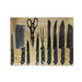 Coltelli inclusi: Chef da 20 cm, Salumi da 20 cm, Pane da 20 cm, Sfilettare da 14 cm, Frutta da 11,5 cm, Spelucchino da 7,6 cm, Sushi Santoku da 18 cm, Mannaia da 18 cm, Forchettone da 13 cm, Forbici da 21,5 cm